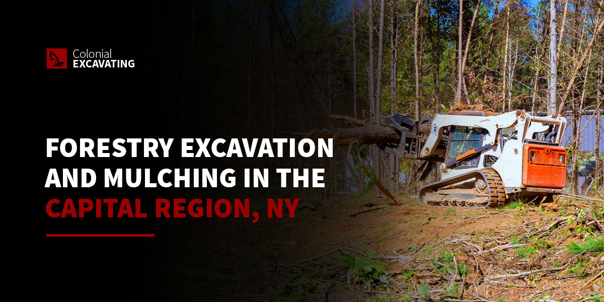 Are you looking for a professional forestry excavator? Whether you need complete forestry excavation, mulching or general land clearing, Colonial Excavating delivers the expertise and equipment to get the job done right. Contact our team today at 518-412-3356 or through our contact form to receive a free estimate and discover why we’re the Capital Region’s premier excavating and landscaping company.